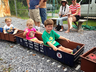 Gabe and Mommy watch people set-up the 3rd of July fireworks display.